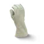 The Radians RWG5100 leather welding glove offers a gray split economy shoulder cowhide leather construction, fleece cotton drill lining, wing thumb, reinforced palm, and 14″ one-piece back.