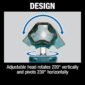 • Adjustable head rotates 220° vertically and pivots 230° horizontally