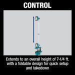 Other features include a dust and water-resistant construction (IP55-rated when using battery) for improved operation in harsh job site conditions. The tower folds and features convenient should strap and handles for easy transportation.