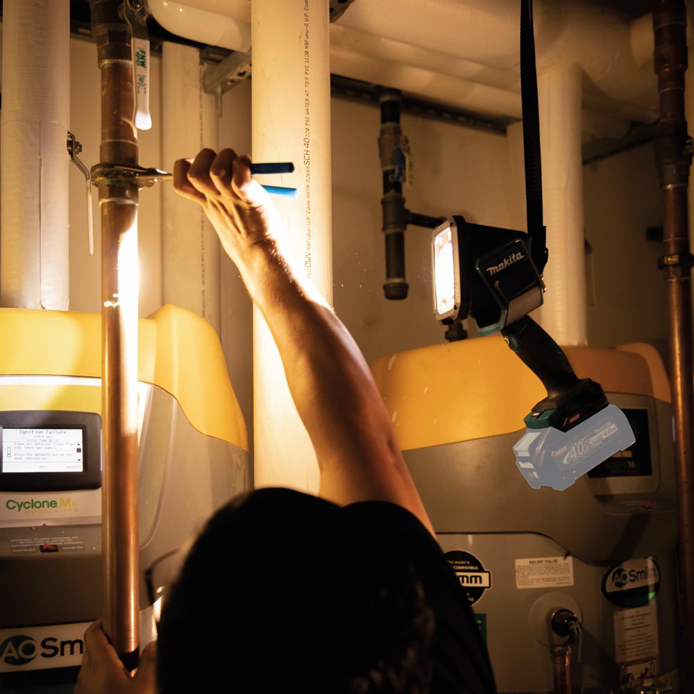 The fast-charging Makita® 40V XGT® Battery delivers up to 10 hours of continuous illumination in Spotlight mode (when using a 4.0Ah 40V max XGT® battery, sold separately).