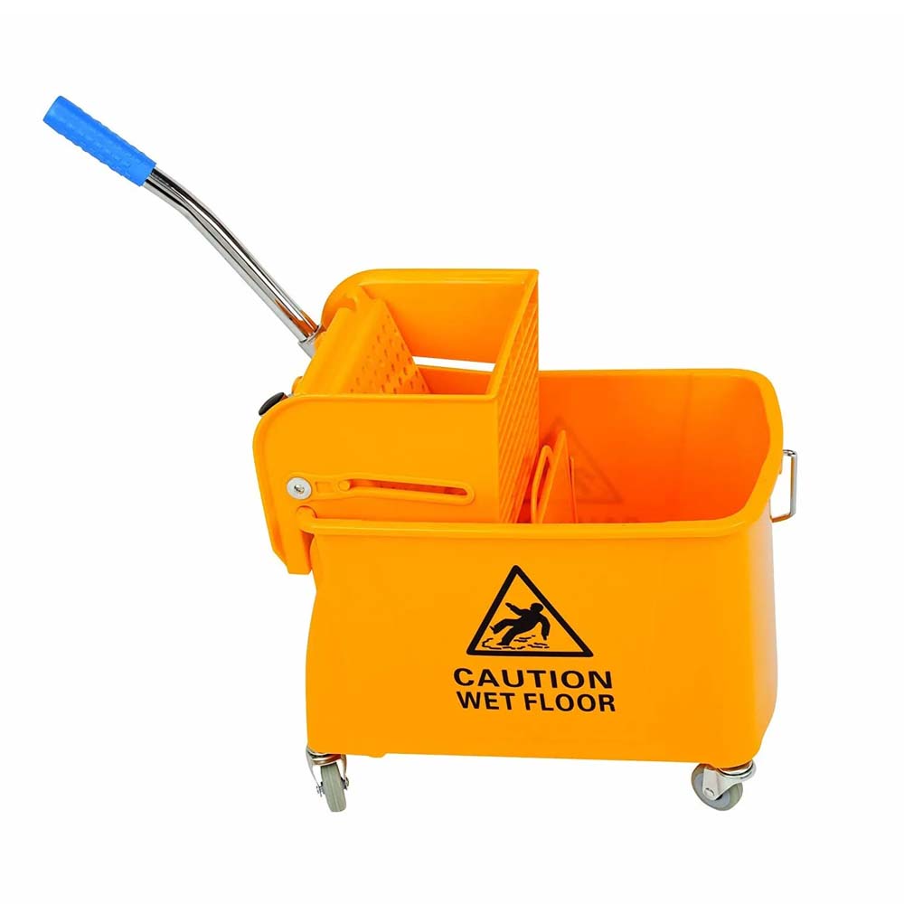 The Magnolia Brush 6023-3 23 Qt Yellow Mop Bucket with Ringer is built for durability and efficiency, making it the ideal cleaning tool for both commercial and residential spaces. This corrosion-resistant mop bucket is designed to withstand heavy use without cracking or deteriorating over time. Its seamless construction ensures that there are no cracks or crevices where dirt can accumulate, making it easier to maintain a clean, hygienic environment. The attached wringer is resistant to cleaning chemicals, ensuring long-term performance even with frequent use of harsh cleaners. With its smooth operation, the wringer allows you to easily squeeze out excess water from your mop, enhancing cleaning efficiency. The Magnolia Brush Yellow Mop Bucket also features durable 3-inch ball bearing casters, providing easy mobility across various floor types without effort. Whether for use in schools, offices, hospitals, or restaurants, this mop bucket is the perfect combination of strength, convenience, and reliability, designed to make your cleaning tasks quicker and more effective.