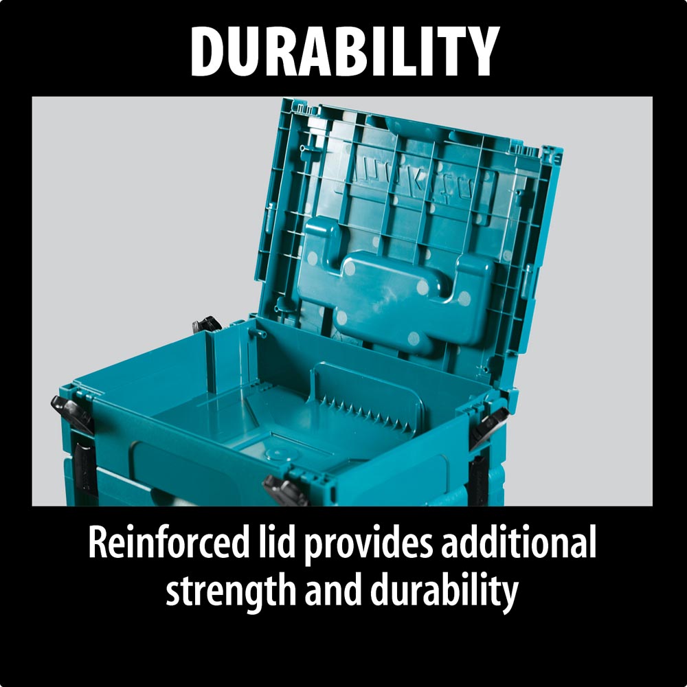 The Makita Interlocking Cases are the latest innovation in power tools storage. The Interlocking Cases were created as a solution to efficiently organize and transport an ever increasing stable of power tools. Traditional tool boxes often vary in size and shape, making them difficult to manage and move. However by utilizing an innovative modular design, the Makita Interlocking Cases can be conveniently stacked, linked and transported together via a collective array of key features