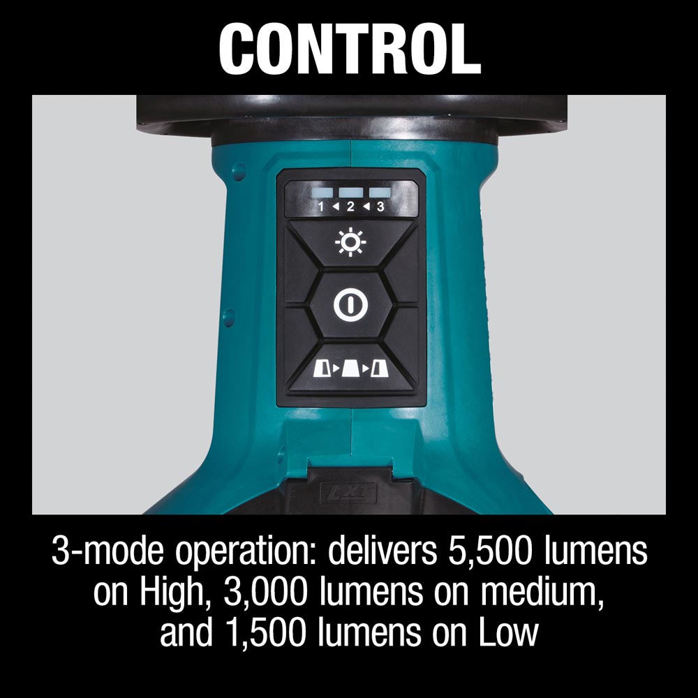- Up to 3.3 hours of continuous illumination with two 5.0Ah 18V LXT® battery on high (batteries and charger not included)