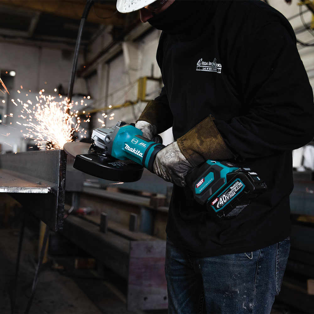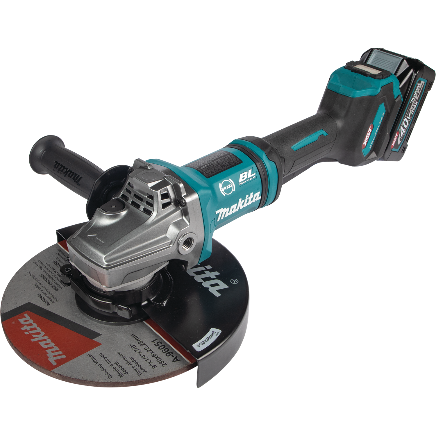 The Makita GAG10M1 40V max XGT Brushless Cordless 9in Paddle Switch Angle Grinder Kit with Electric Brake and AWS (GAG10M1) delivers corded grinding performance without the cord for the most demanding applications. It’s powered by a Makita-built brushless motor which delivers the power and performance needed for heavy-load applications. The GAG010M1 is ideal for grinding and cutting a wide range of materials including tile, concrete, pipe, conduit, and more.