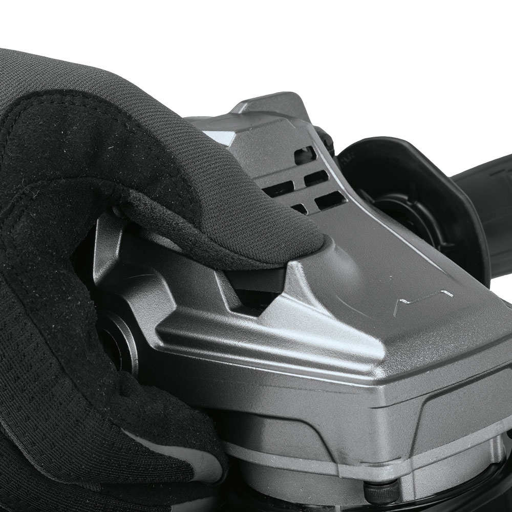An electric current limiter helps protect the motor from overload in high-torque applications. Additional features include an electric brake that stops the grinding or cut-off wheel in 2 seconds or less and Active Feedback-sensing Technology (AFT) that turns the motor off if rotation of the wheel is forced to a stop.