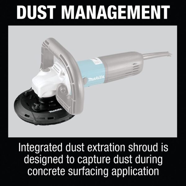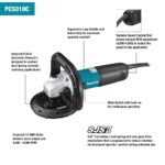 Makita’s 5-inch SJSII Compact Concrete Planer with Dust Extraction Shroud is a kit that comes complete with one 4-1/2” Diamond Cup Wheel, which is engineered for low vibration and fast material removal. The PC5010CX1 combines power and ease-of-use with superior handling in a compact size.