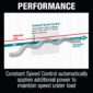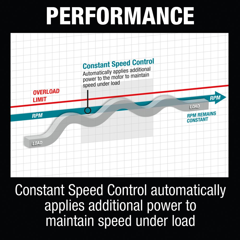 - Speed Control automatically applies additional power to the motor to maintain speed under load