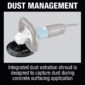 - PC5010CX1 dust extraction shroud is designed to capture dust during concrete surfacing applications