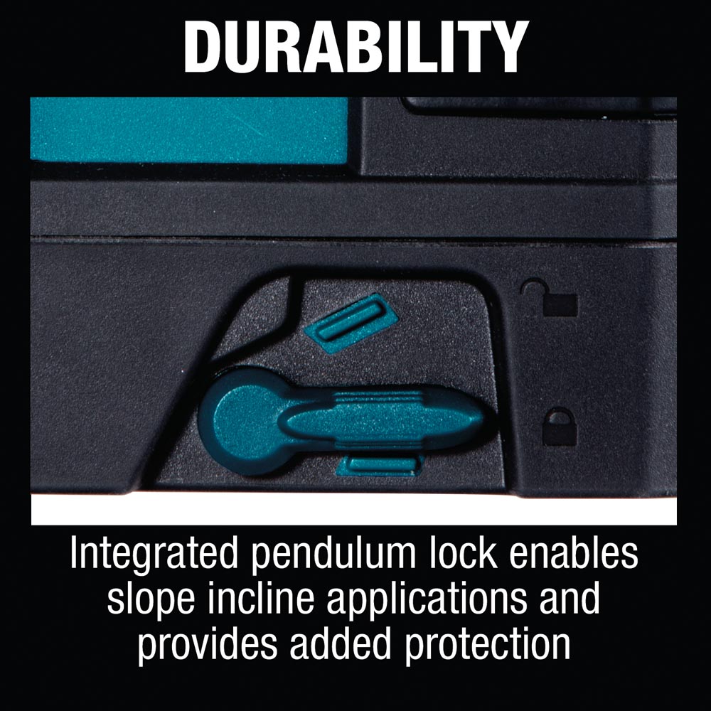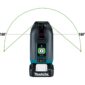 - Green line visibility range up to 115’ depending on ambient light and detectable up to 262′ with Makita Laser Detector LE00855702 (sold separately)