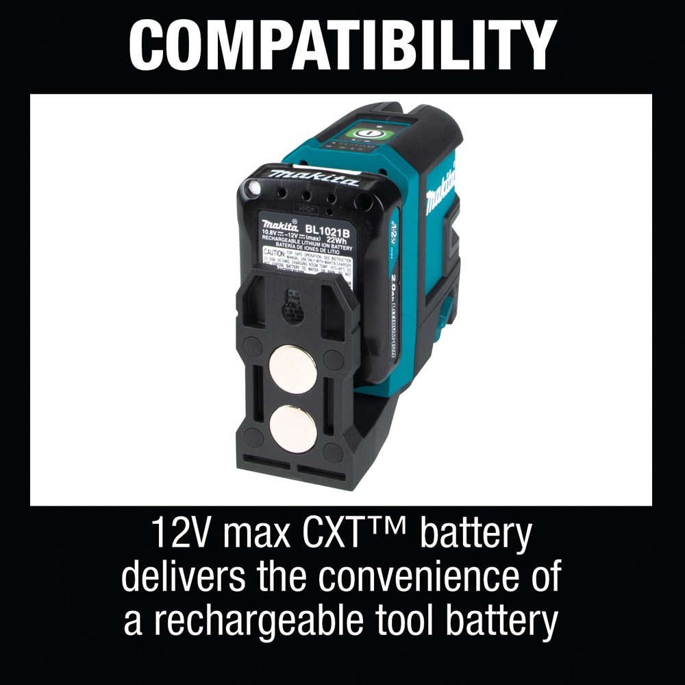- Up to 10 hours of continuous run time using included Makita 12V max CXT® 2.0Ah rechargeable battery; up to 20 hours of continuous run time using a 12V max CXT® 4.0Ah battery