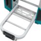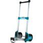 The Cart for Interlocking Cases (TR00000002) features an advanced design that simplifies transporting tools and accessories to and from a job site, or while on the job site. The cart has the capacity to transport up to 275 lbs. on flat ground and can transport up to 132 lbs up and down stairs. The cart can be moved easily over all kinds of terrain due to large 8” wheels. It has a telescoping handle for easy transportation and storage, rubber feet, and a stopper to prevent unwanted surface damage while preventing the cart from unwanted movement, and it has an adjustable nylon belt to help secure the load to the cart. It’s part of the Makita MAKPAC Interlocking Storage System.
