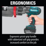 It’s part of Makita’s expanding 18V Lithium-Ion system, the world’s largest cordless tool system powered by 18V Lithium-Ion slide-style batteries. Makita 18V Lithium-Ion batteries have the fastest charge times in their categories, so they spend more time working and less time sitting on the charger.