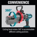 - Cutting head rotates 360° for different cutting positions
