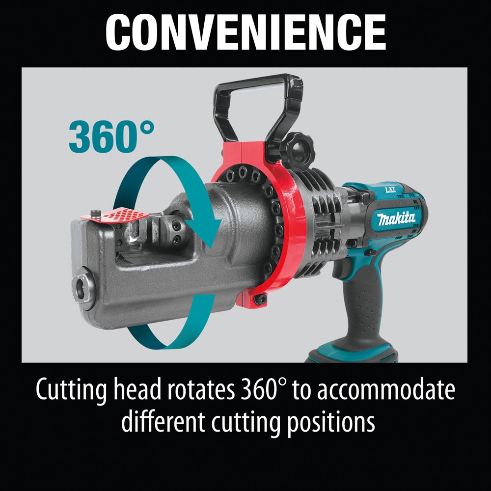 Makita has delivered a cordless and spark-free cutting solution for rebar and steel rod with the 18V LXT Lithium-Ion Cordless Rebar Cutter (model XCS01T). The XCS01T has a cutting capacity of up to #6 ¾” rebar, with a cutting head that rotates a full 360 degrees. The long-lasting cutting blade provides up to 4,000 cuts before requiring replacement. It is an ideal solution for work away from a power source or in remote locations.