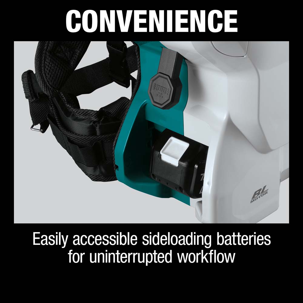 - Up to 139 minutes of continuous run time on normal setting and 40 minutes on max setting using two 18V LXT® 6.0Ah batteries BL1860B