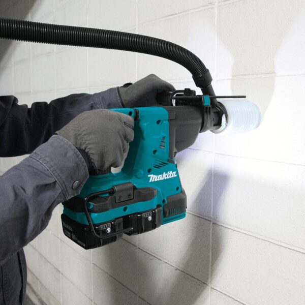 The Makita 36V (18V X2) LXT® Brushless 1-1/8” AVT® Rotary Hammer is a cordless concrete solution that’s loaded with advanced engineering for maximum efficiency. It’s powered by two 18V LXT® batteries and an efficient brushless motor for maximum power, speed and run-time for corded demands, without the cord. X2 LXT technology delivers up to 140 ½” x 2-3/8” holes per charge when using two 18V LXT 5.0Ah batteries.