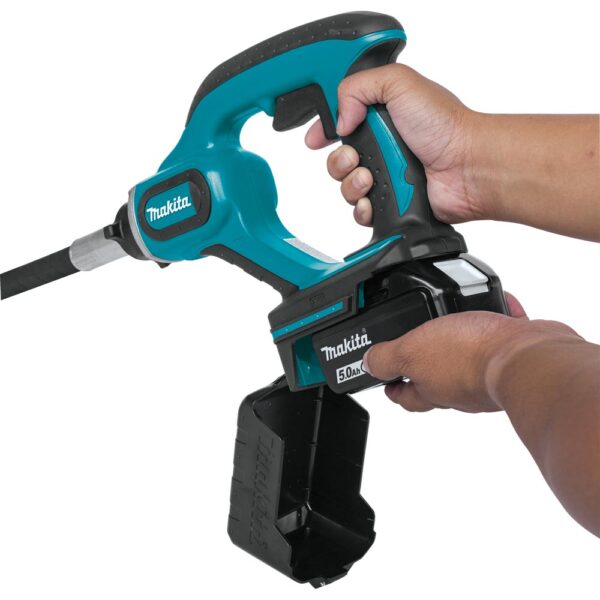 It’s part of Makita’s expanding 18V Lithium-Ion system, the world’s largest cordless tool system powered by 18V Lithium-Ion slide-style batteries. Makita 18V Lithium-Ion batteries have the fastest charge times in their categories, so they spend more time working and less time sitting on the charger.