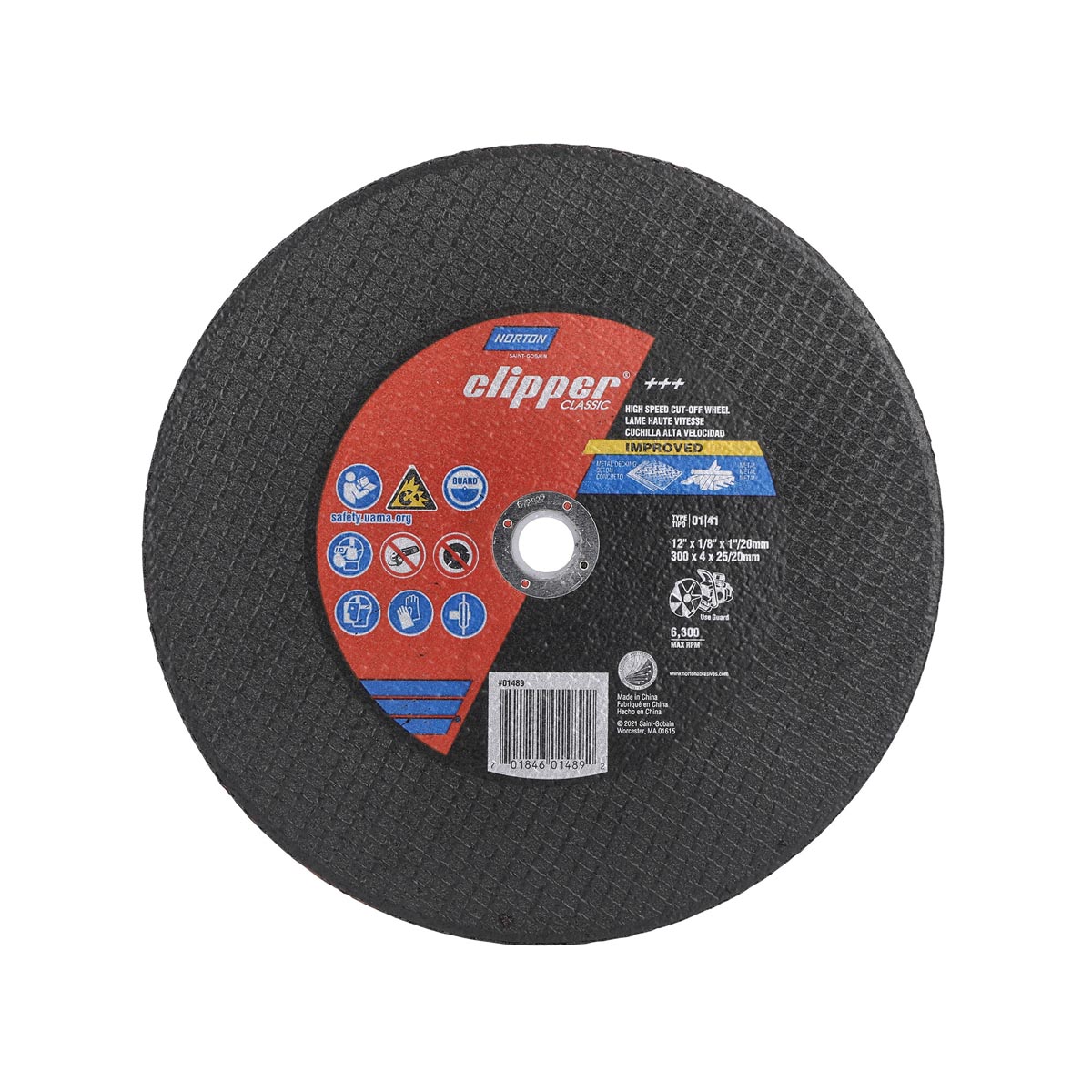 Norton Clipper Classic is the professional choice in high-speed abrasive cut-off wheels for gas saws. Achieve market leading cutting speeds thanks to the new and improved design. The new advanced alumina grain blend has more cutting points per area offering 50% faster cut rate and a new proprietary tough bond technology offers twice the life and aggressive cutting action. The two layers of reinforcement and universal arbor system make this wheel the most versatile choice for high-speed applications using either a 1-inch or 20 mm arbor. Cut rebar, structural steel, small to medium solid pieces, steel pipe, and sheet metal, and roof decking with ease.