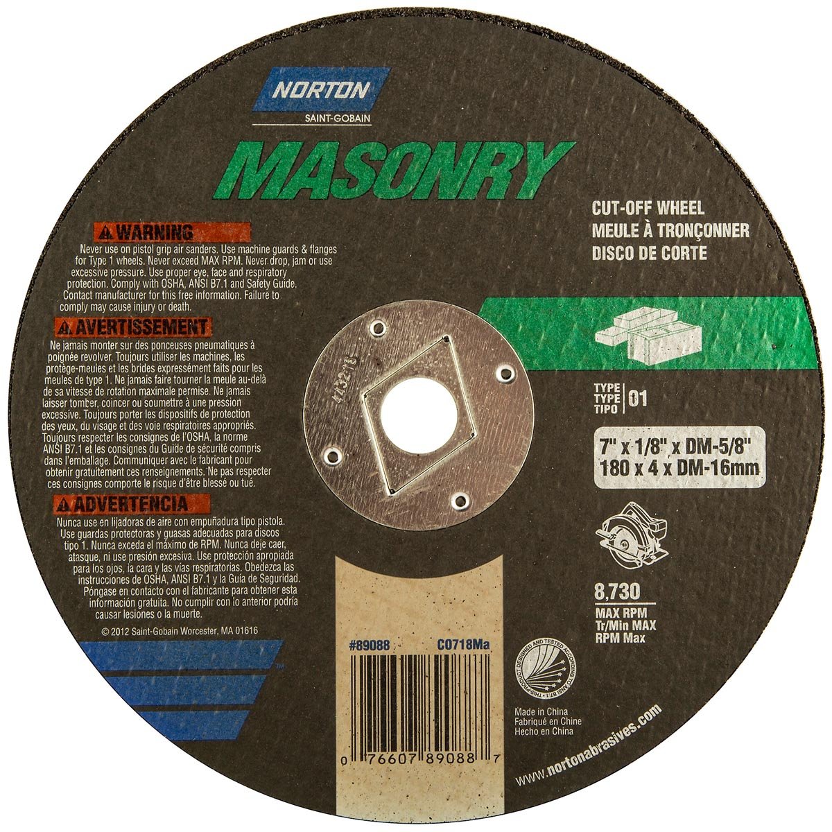 Norton 7 x 1/8 x DM 5/8 In. Masonry Circular Saw Cut-Off Wheel C 24 T T01/41