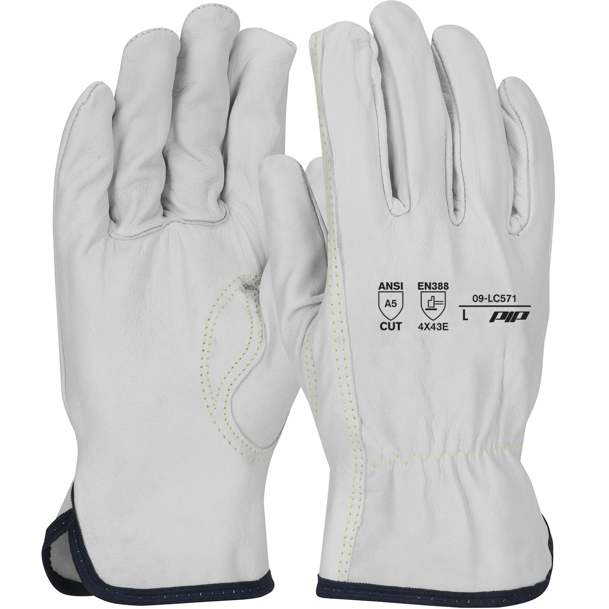 PIP 09-LC571 Economy Grade Top Grain Goatskin Leather Drivers Glove with HPPE Blended Lining – Keystone Thumb ANSI A5 Cut Resistance [1 dozen]