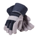 PIP 85-DB7563P Economy Grade Split Cowhide Leather Patch Palm Glove with Denim Back – Denim Safety Cuff [1 dozen]