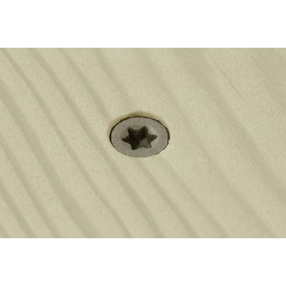 The Simpson Strong-Tie DSVR158S #8 x 1-5/8 In. DSV Collated Wood Screw is a high-performance fastening solution designed for preservative-treated decking and exterior wood applications. Engineered for durability and ease of installation, the DSV screw features under-head nibs and a fast-start tip, allowing it to drive smoothly and countersink effortlessly into modern wood deck boards. Its optimized shank is built to accommodate the natural expansion and contraction of fast-growth lumber, ensuring long-term stability. Designed for efficiency, the DSV Wood Screw is available in both hand-drive and collated strips, making it compatible with the Quik Drive auto-feed screw driving system for rapid and precise installations. Its low-torque threads allow for up to 35% more screws to be driven per battery charge, maximizing productivity while reducing wear on tools. The rimmed flat head with nibs ensures a clean, flush finish, while the high-low thread design and Type-17 point provide a fast start and superior holding power in dimensional lumber. Protected with Quik Guard coating, the DSV screw offers excellent corrosion resistance for exterior and preservative-treated wood applications, meeting the performance requirements of ICC-ES AC257 exposure conditions 1 and 3. Available in colors designed to blend with most wood types, this screw delivers both strength and aesthetic appeal. Ideal for deck construction and wood-to-wood outdoor applications, the DSV Wood Screw is a reliable choice for professionals and DIYers seeking long-lasting performance in demanding environments.