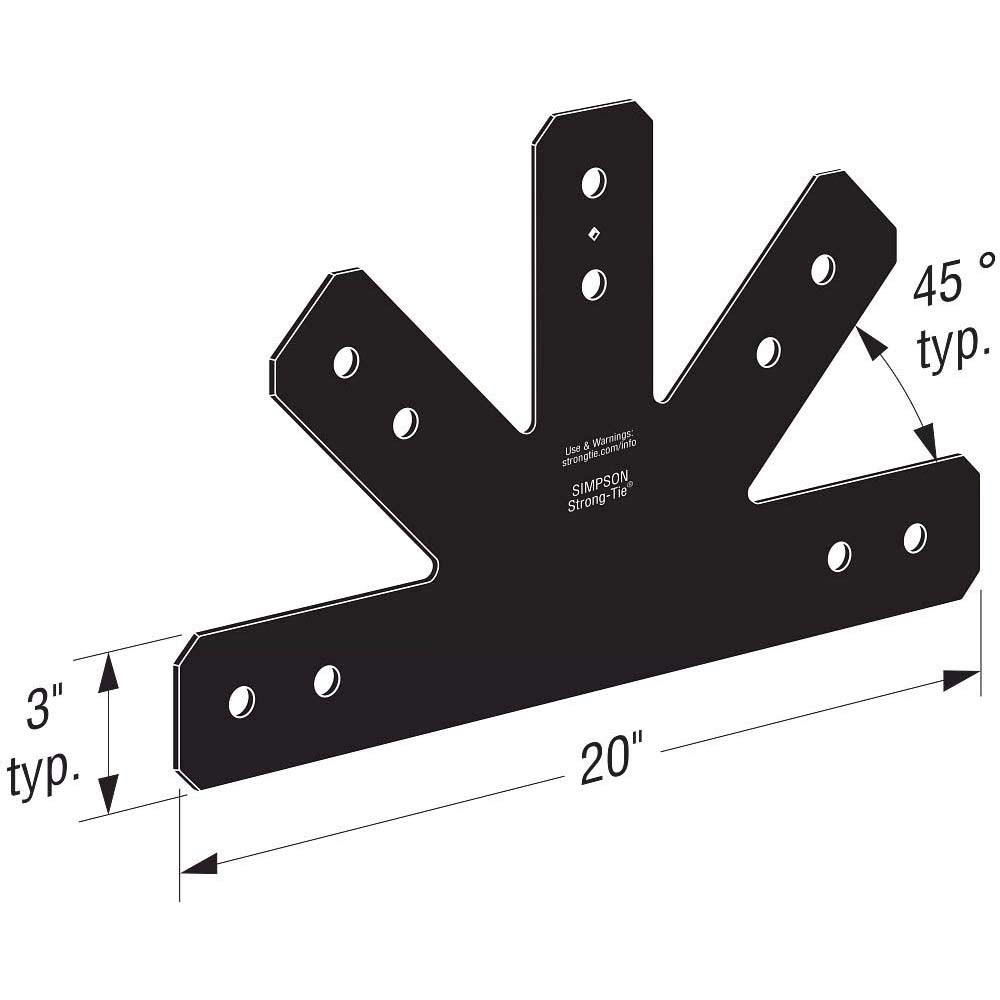 The Simpson Strong-Tie APVGP1212-4 Decorative Gable Plate is part of the Outdoor Accents Avant Collection, designed to provide both structural reinforcement and a modern, decorative look to outdoor living spaces. This gable plate secures wood beams to three angled wood braces, ensuring a strong and visually appealing connection. The Avant Collection’s clean, straight-edged design enhances a variety of architectural styles, making it ideal for pergolas, patio covers, gazebos, and other outdoor structures.