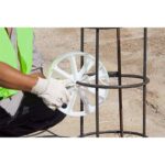 The Simpson Strong-Tie 4QLHD Quick-Lock HD Pier Wheel is a reliable solution designed to properly position a reinforcing steel cage in a drilled shaft or other heavy-duty applications where concrete cover must be maintained. Its unique one-piece design ensures quick and easy installation, allowing for seamless integration into your construction process. Made from durable, noncorrosive plastic, the Quick-Lock HD Pier Wheel fits rebar sizes #3 through #7 and is engineered to withstand the rigors of demanding construction environments. With no tools required for installation, the Quick-Lock HD Pier Wheel easily snaps over the rebar, offering a hassle-free and efficient setup. It is ideal for deep foundations, drilled shafts, augercast piles, and bridge columns. Proudly made in the USA with globally sourced materials, this product features high-density polyethylene construction and a natural finish, providing long-lasting durability and reliability for your projects.