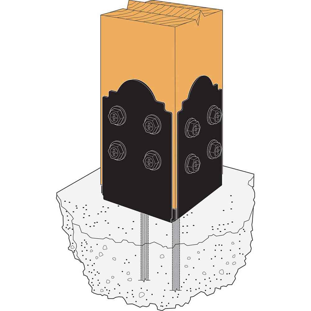 The Simpson Strong-Tie APB88 Adjustable Post Base is a versatile and durable solution for securing 8×8 posts to concrete, making it ideal for pergolas, patio covers, and other outdoor structures. As part of the Outdoor Accents Mission Collection, this post base features decorative edges with a southwestern flair, adding an elegant touch to your project. Constructed with ZMAX galvanized steel and a black powder-coat finish, it provides exceptional corrosion resistance for exterior and treated-wood applications.