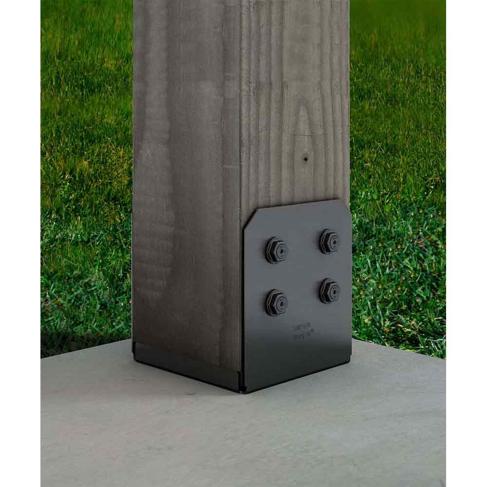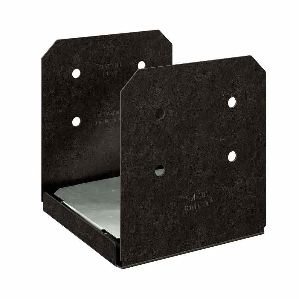 The Simpson Strong-Tie APVB1010 Adjustable Post Base is designed to secure posts and columns to concrete, providing both structural stability and decorative appeal. As part of the Outdoor Accents Avant Collection, this post base features a clean, timeless design that complements a wide range of architectural styles. Constructed from ZMAX galvanized steel with a black powder-coat finish, it offers superior corrosion resistance, making it ideal for outdoor applications such as pergolas, patio covers, and other top-supported structures.