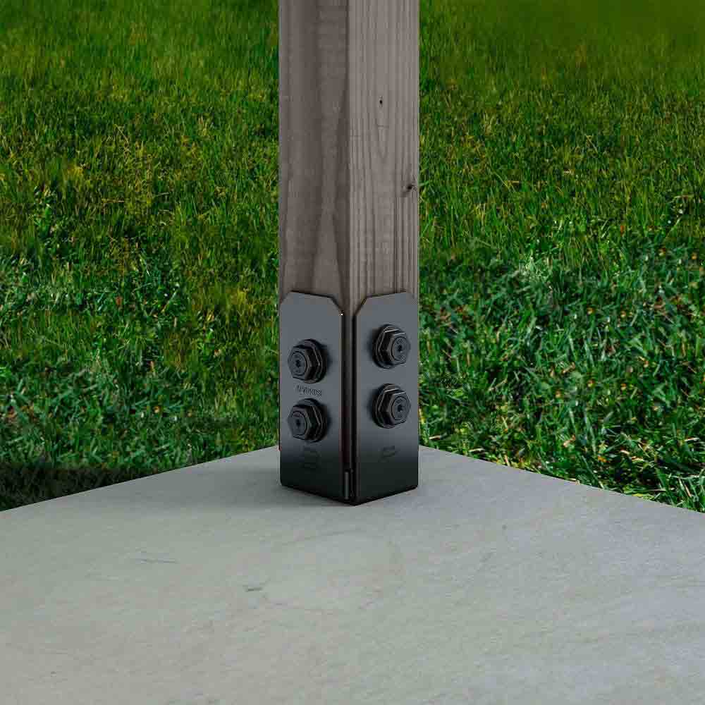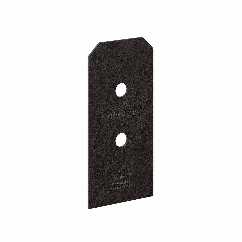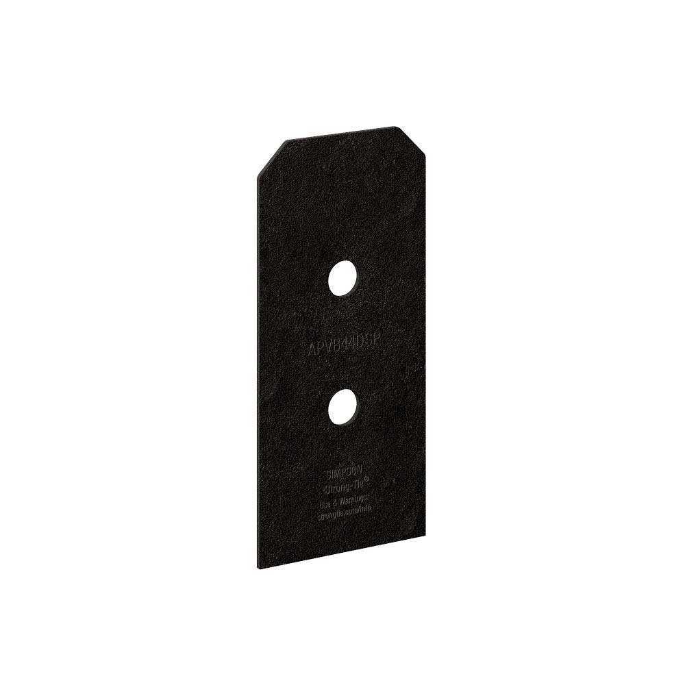 Enhance the look and durability of your outdoor structures with the Simpson Strong-Tie APVB44DSP Decorative Post Base Side Plate. As part of the Outdoor Accents Avant Collection, this side plate features straighter edges for a clean, modern design, adding a refined touch to any pergola, patio cover, or other top-supported structure. Designed to attach to the bottom of a post or column, the APVB44DSP provides a polished, finished appearance while complementing the Outdoor Accents APVB decorative post base. Constructed from heavy-duty 12-gauge steel, it features ZMAX® galvanization with a black powder coat, offering superior corrosion resistance for exterior and treated-wood applications.