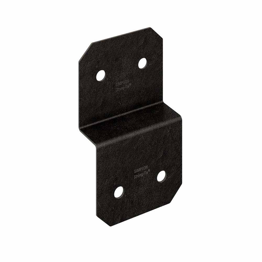 The Simpson Strong-Tie APVDJT1.75-6 Deck Joist Tie is part of the Outdoor Accents collection, designed to combine both aesthetic appeal and structural strength for custom outdoor living spaces. This decorative deck joist tie attaches 2x joists to the side of 4x or larger support posts, providing a secure connection. It installs quickly and easily using the Outdoor Accents structural wood screw and hex-head washer, delivering the look of a bolted connection without the hassle of through-bolting. Crafted from 12-gauge steel, this deck joist tie features the Avant Collection’s signature straight edges and chamfered corners, ensuring a clean, contemporary design. The ZMAX galvanization with a black powder coat offers enhanced corrosion resistance, making it ideal for exterior and treated-wood applications.