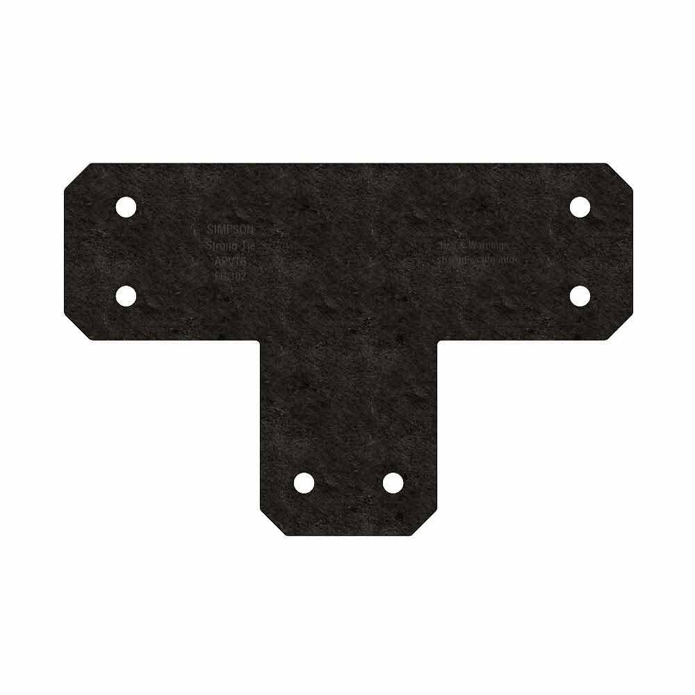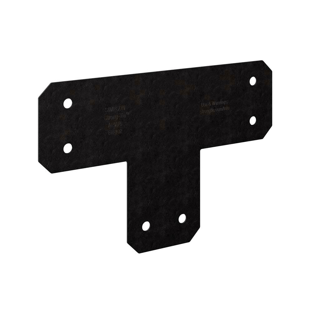 The Simpson Strong-Tie APVT6 T Strap from the Outdoor Accents Avant Collection adds both structural reinforcement and decorative appeal to outdoor projects. Designed to secure two intersecting wood members at a 90° angle, this flat T strap provides reliable lateral support while enhancing the aesthetic of pergolas, patio covers, and other wood structures. Crafted from 12-gauge steel with straight edges and chamfered corners, it delivers a clean, modern look.