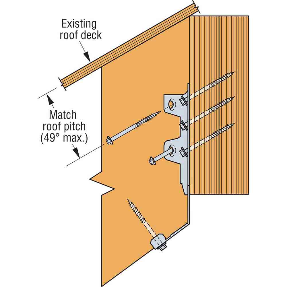 - High placement of fasteners allows the rafter to hang below the ridge beam.