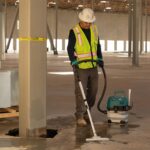 The vacuum includes a 1-1/4” x 5-1/2” anti-static hose, crevice nozzle with on-board storage, and an aluminum telescoping wand that adjusts to user height and collapses for storage. The wand includes a universal floor nozzle for performance in both janitorial-sanitation and construction job site applications.