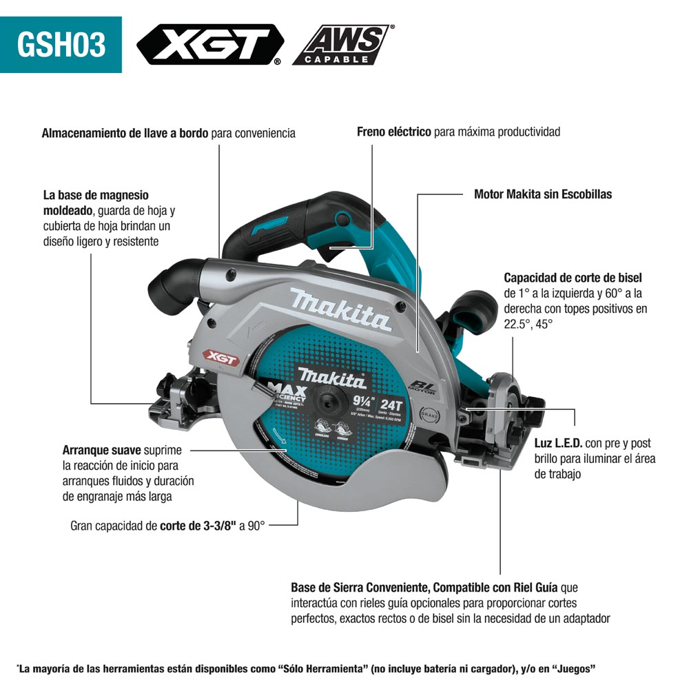 GSH03Z 40V max XGT Brushless Cordless 9‑1/4″ Circular Saw with Guide Rail Compatible Base, AWS Capable