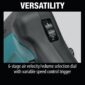 • 6-stage air velocity/volume selection dial with variable speed control trigger