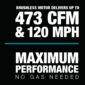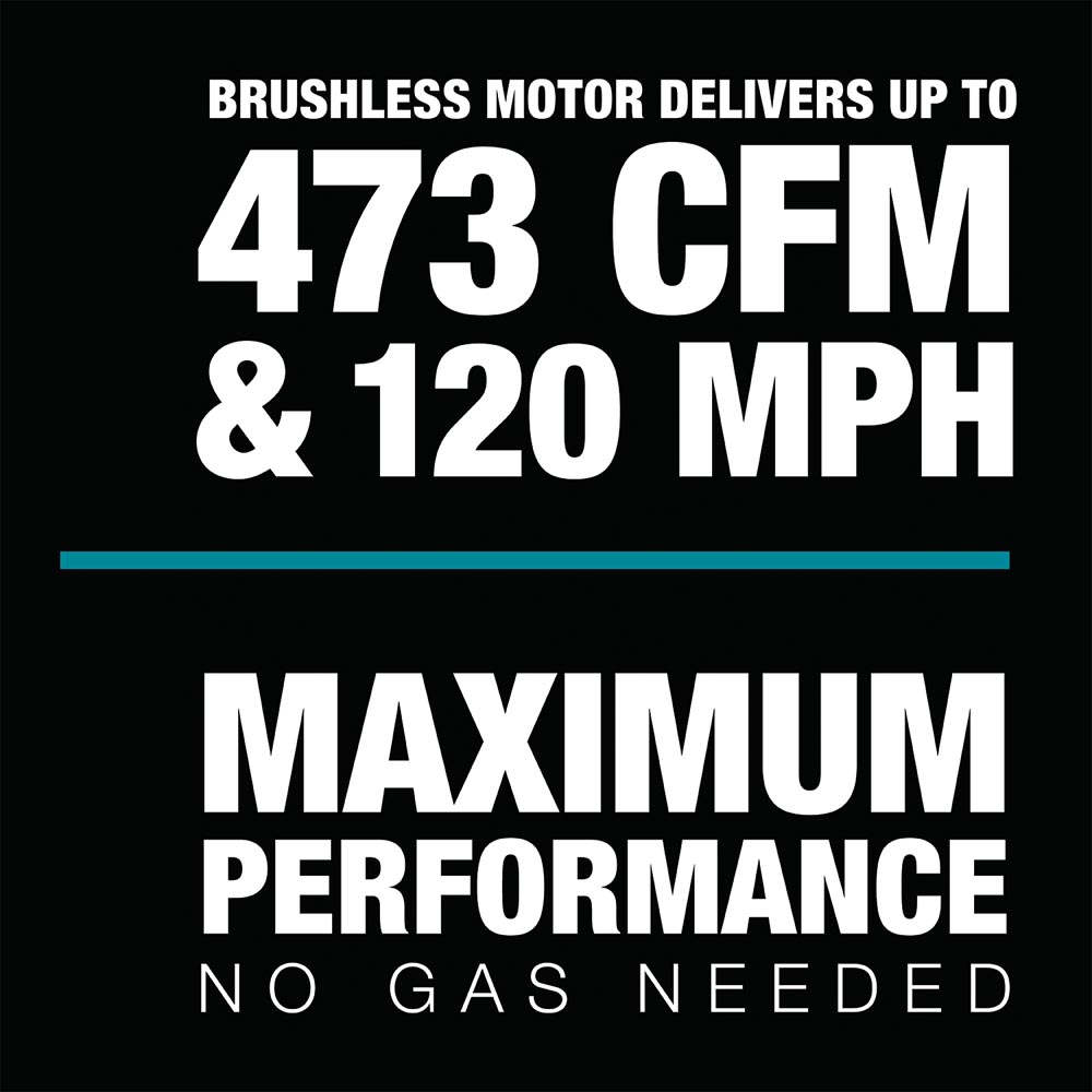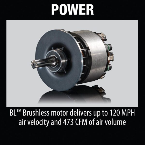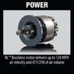 • Makita-built motor produces a maximum air velocity of 120 MPH