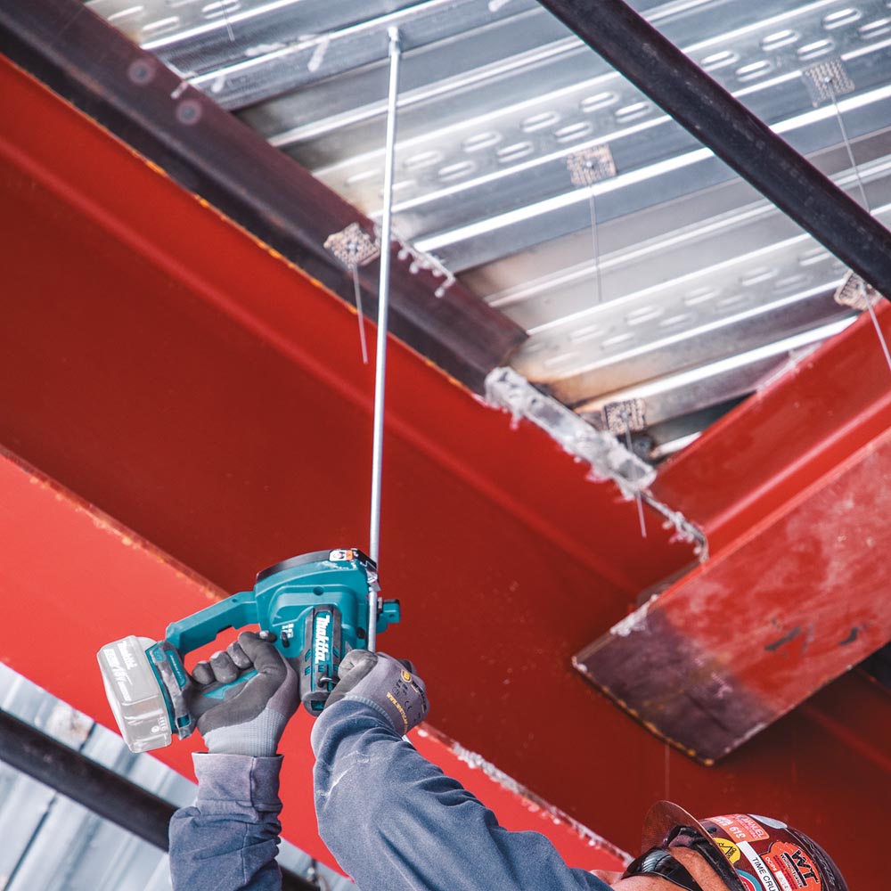Makita has delivered a cordless cutting solution for steel rod cutting with the 18V LXT® Brushless Cordless Threaded Rod Cutter (XCS03Z, tool only). It will make up to 1,300 cuts of 3/8” coarse thread threaded rod and 1,200 cuts of 3/8” coarse thread stainless steel threaded rod with a 5.0Ah battery (sold separately). The compact design makes the XCS03Z ideal for overhead cutting of installed threaded rod. Provides spark-free cuts that are clean and burr-free allowing easy hand-threading of fastener or nut.