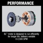 - BL™ Brushless motor is designed to run cooler and more efficiently for longer life; delivers variable 0-3,000 SPM