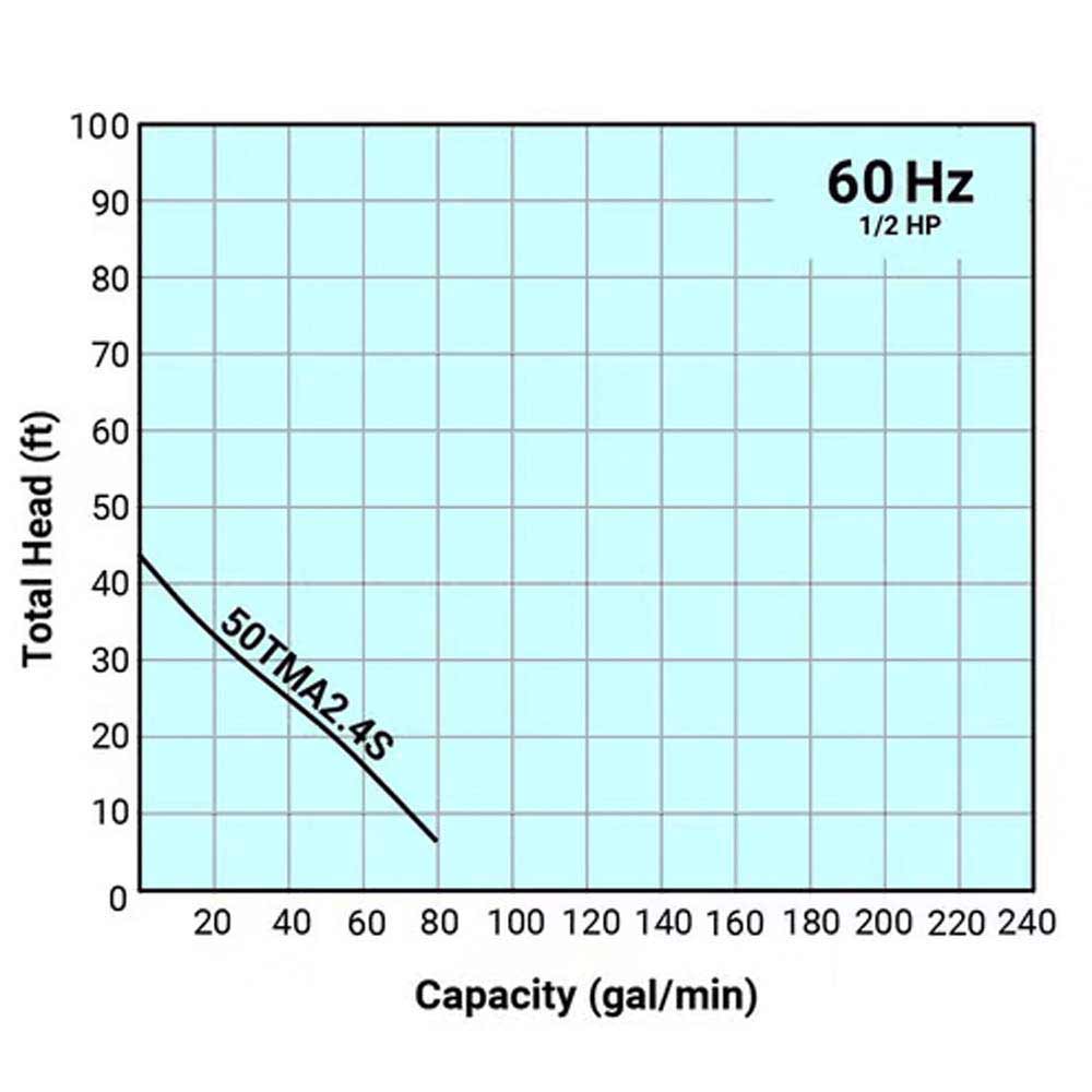 The Tsurumi 50TMA2.4S is a compact, lightweight, and highly reliable submersible pump designed for demanding applications like saltwater drainage, bilge pumping, and site drainage. This model features a robust 230V configuration, making it ideal for users requiring reliable power for continuous-duty operations in tough environments. Built with corrosion-resistant 304 stainless steel and titanium components, the 50TMA2.4S ensures exceptional durability, even in the harshest conditions. Its semi-vortex, vortex, and semi-open impellers provide superior solid-handling capabilities, allowing it to pass solids and stringy materials without clogging, while also offering enhanced wear resistance when dealing with abrasive materials. Constructed using high-quality FRP (Fiberglass Reinforced Plastic) for both the casing and impeller, this pump ensures outstanding resistance to corrosion. Additionally, it is equipped with double inside mechanical seals made of silicon carbide, housed in an oil-filled chamber, and protected further by a lip seal for added durability. The 50TMA2.4S is powered by a highly efficient, copper-wound 230V motor with air-filled cooling and Class E insulation, which reduces energy costs while providing reliable, continuous-duty operation. The motor is protected by built-in thermal and amperage sensing devices to prevent failure from overloading, single-phasing (in three-phase units), or accidental dry running. For improved longevity, the pump utilizes double-shielded, pre-lubricated C3 ball bearings, ensuring the pump remains operational for years. The use of FRP and titanium components further enhances its resistance to corrosion in various applications. With a discharge size ranging from 2″ to 3″ NPT (50 to 80mm), the 50TMA2.4S operates across a horsepower range of 1/3 to 5HP (0.25 to 3.7 kW) and offers performance between 10.6 and 224.6 GPM (0.04 to 0.85 m³/min). The pump can handle heads from 10.7 to 94.2 feet (3.25 to 28.71 meters) and operates efficiently at water temperatures up to 104°F (40°C). This 230V model is available in a variety of configurations, including 1-phase (115V or 230V) and 3-phase (208-220V, 230V, 460V, or 575V) options. It also comes with a 32-foot (10-meter) submersible power cable for flexibility in installation. The Tsurumi 50TMA2.4S is perfect for a wide range of applications, from saltwater drainage and chemical spill containment to decorative fountains, fish ponds, and aquaculture. With Tsurumi’s legacy of innovation and quality behind it, this pump provides outstanding reliability and performance backed by professional support tailored to your specific needs.