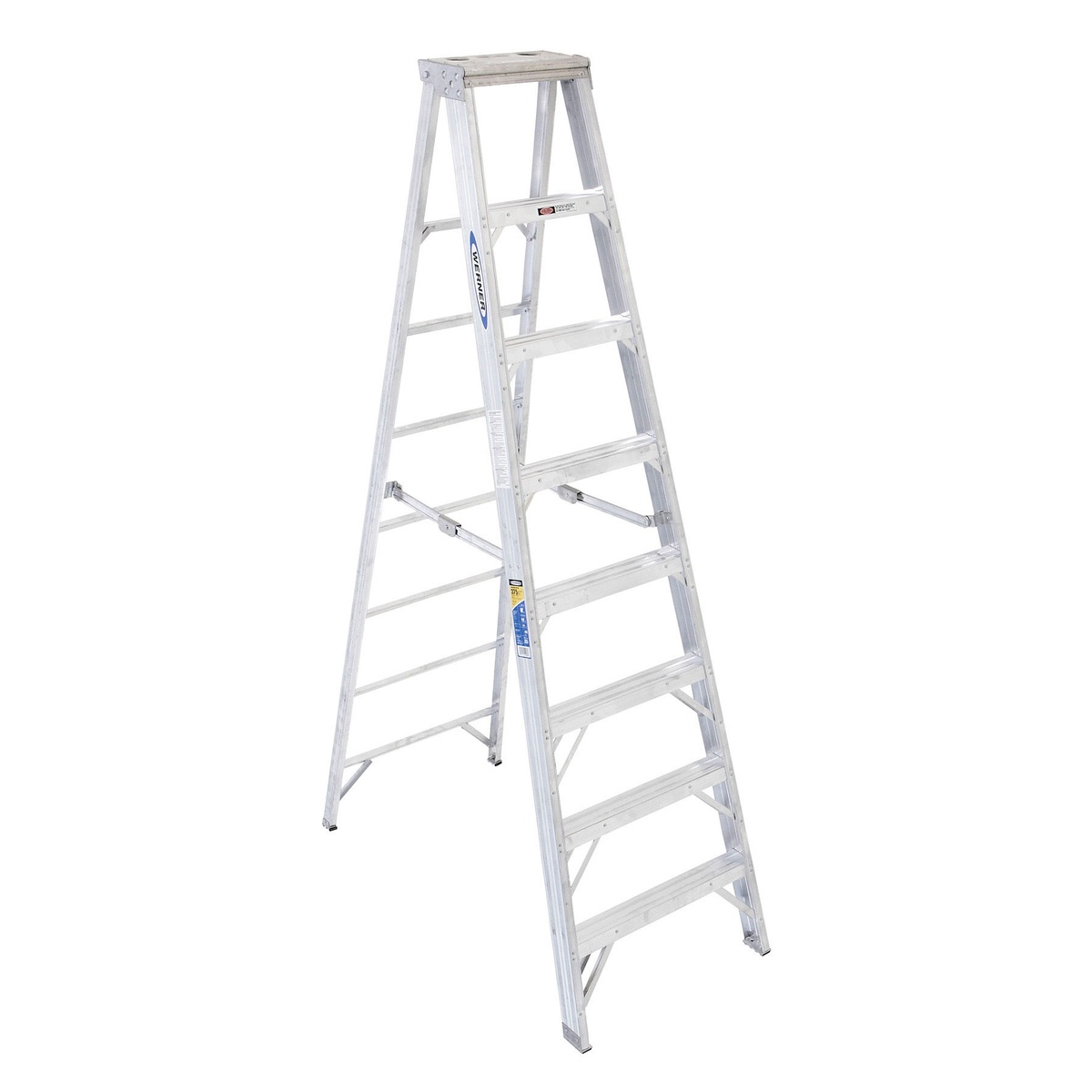The 406 Aluminum 6-foot step ladder has a 375 lb duty rating and features a heavy-gauge Tool-Tra-Top with parts tray and tool slots. All steps are knee-braced and the slip-resistant Traction-Tred steps are double riveted for durability. Rear rail is a full U-channel with a full set of rear horizontals spaced one per foot. Ideal for professional jobs requiring a sturdy, lightweight single-sided ladder.