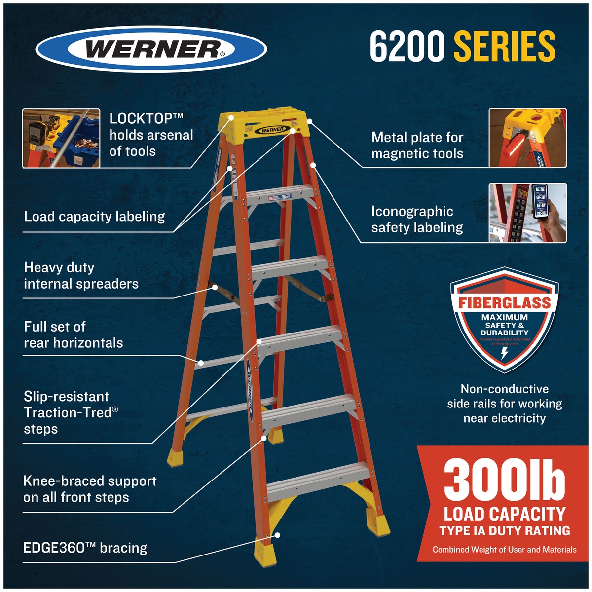 Werner 6207 7ft Type IA Fiberglass Step Ladder, Single-Sided, 300 lb Duty Rating