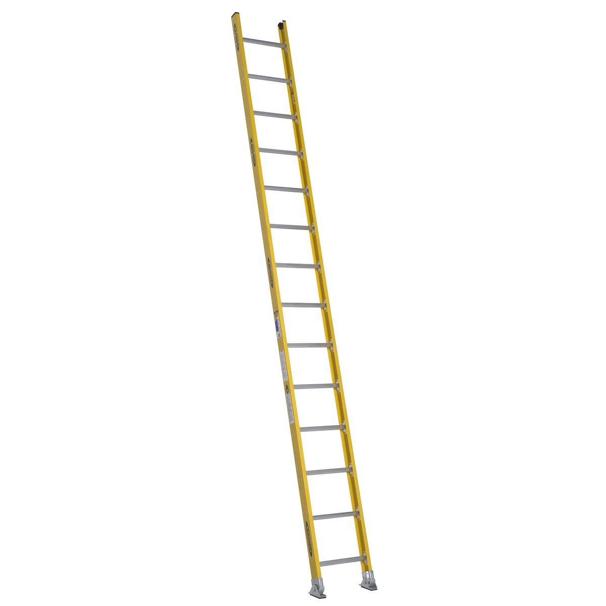 Werner 7114-1 14ft Type IAA Fiberglass Round Rung Straight Ladder, Single Section, Yellow