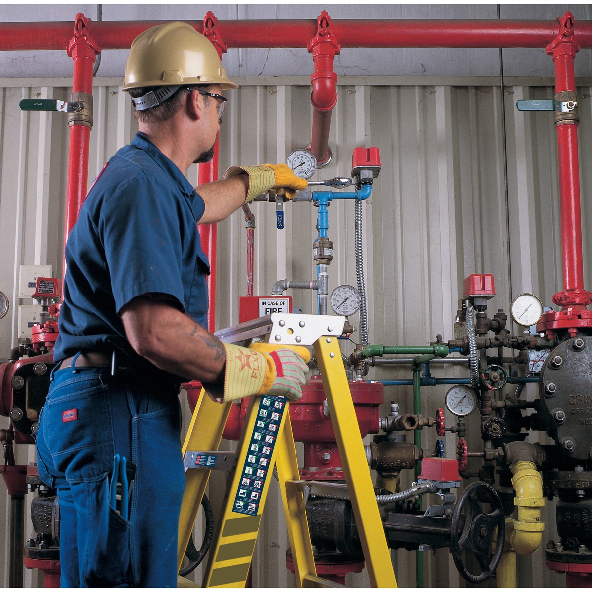 The 7312S fiberglass step ladder carries a 375 lb duty rating and features a heavy-duty aluminum HolsterTop with integrated parts tray and tool slots. Built for jobsite durability with a full set of horizontals, heavy-duty internal spreaders, molded external rail shields, and EDGE bracing to help protect the rails. Slip-resistant Traction-Tred steps are single riveted and include extra-wide knee braces. GLAS*MARK Violator stripes improve visibility, and non-conductive fiberglass rails make it suitable for work near electricity.