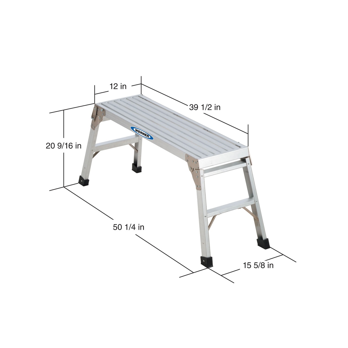 The Werner AP-20X-2 Aluminum Project Platform provides a larger, non-slip work surface for painting, cutting, cleaning and more. With a 250 lb load capacity and fold-flat legs, it?s easy to transport and store while offering stable, comfortable standing height for a variety of tasks. Package includes two platforms.