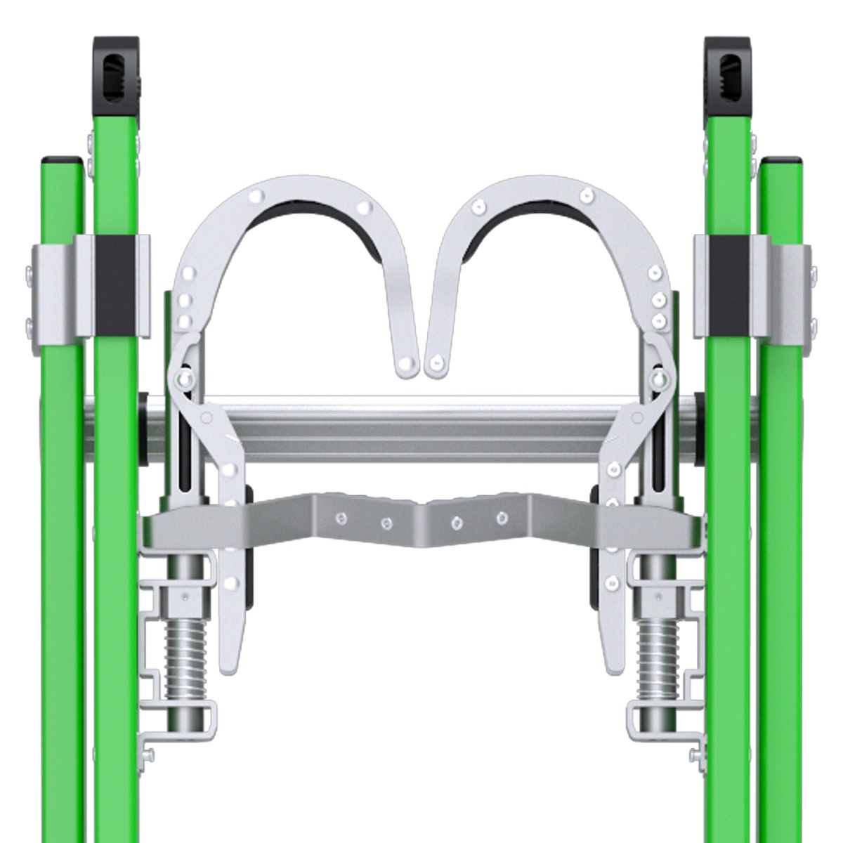 The AERO lightweight extension ladder delivers a 375 lb duty rating with BOXLOK interlocking box rail technology for a solid, confident climb. It includes a factory-installed Strand Grab rated for 375 lb service and a rubberized V-Rung for poles up to 10 in. Tri-rungs provide a wide, slip-resistant standing surface; dual-action feet offer traction on hard or penetrable surfaces. Non-conductive fiberglass rails make it suitable for work near electricity?ideal for utility and telecom work.