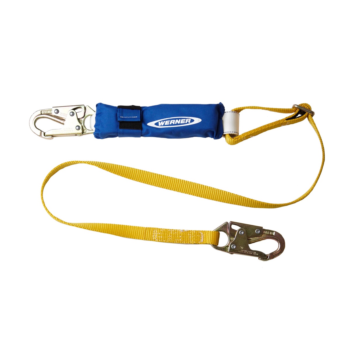 Werner C311102 6ft DeCoil Adjustable Single Leg Lanyard (DCELL Shock Pack, Snap Hook, 1in Web)