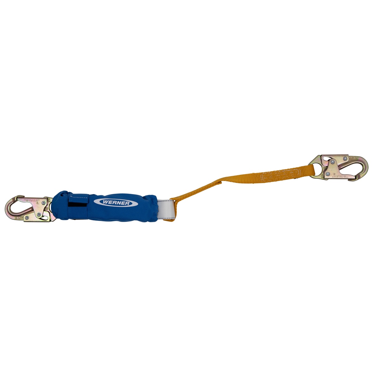 Werner C311104 3ft DeCoil Lanyard, DCELL Shock Pack, 1 in Web, Snap Hook