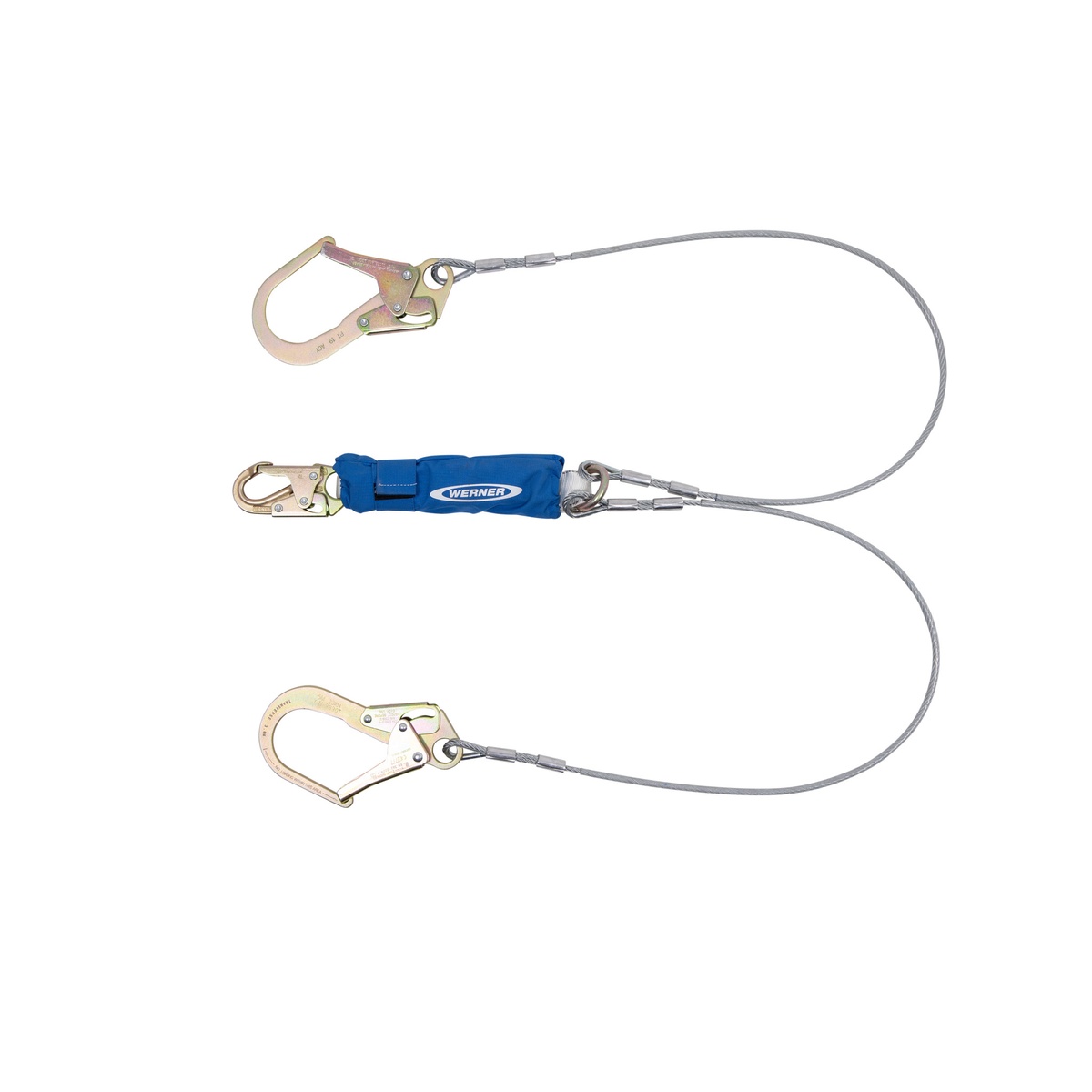 Werner C461200 DeCoil Cable TwinLeg Lanyard, 6 ft, 1/4 in Vinyl-Coated Steel Cable, Snap Hook to Harness, Rebar Hooks
